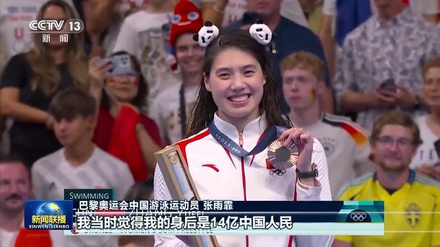 巴黎奥运会中国游泳运动员 张雨霏:没有想到他当时走在我们跟前,每一名运动员的成绩和名字他都记住了,然后就是亲切地与我们交谈,每个人交谈的内容都不一样。我觉得生在中国真好,特别是在赛场上的时候,我没有拿到冠军,但是我看见一面面五星红旗,他们依然在为我加油呐喊,安慰我,我当时觉得我的身后是14亿中国人民。